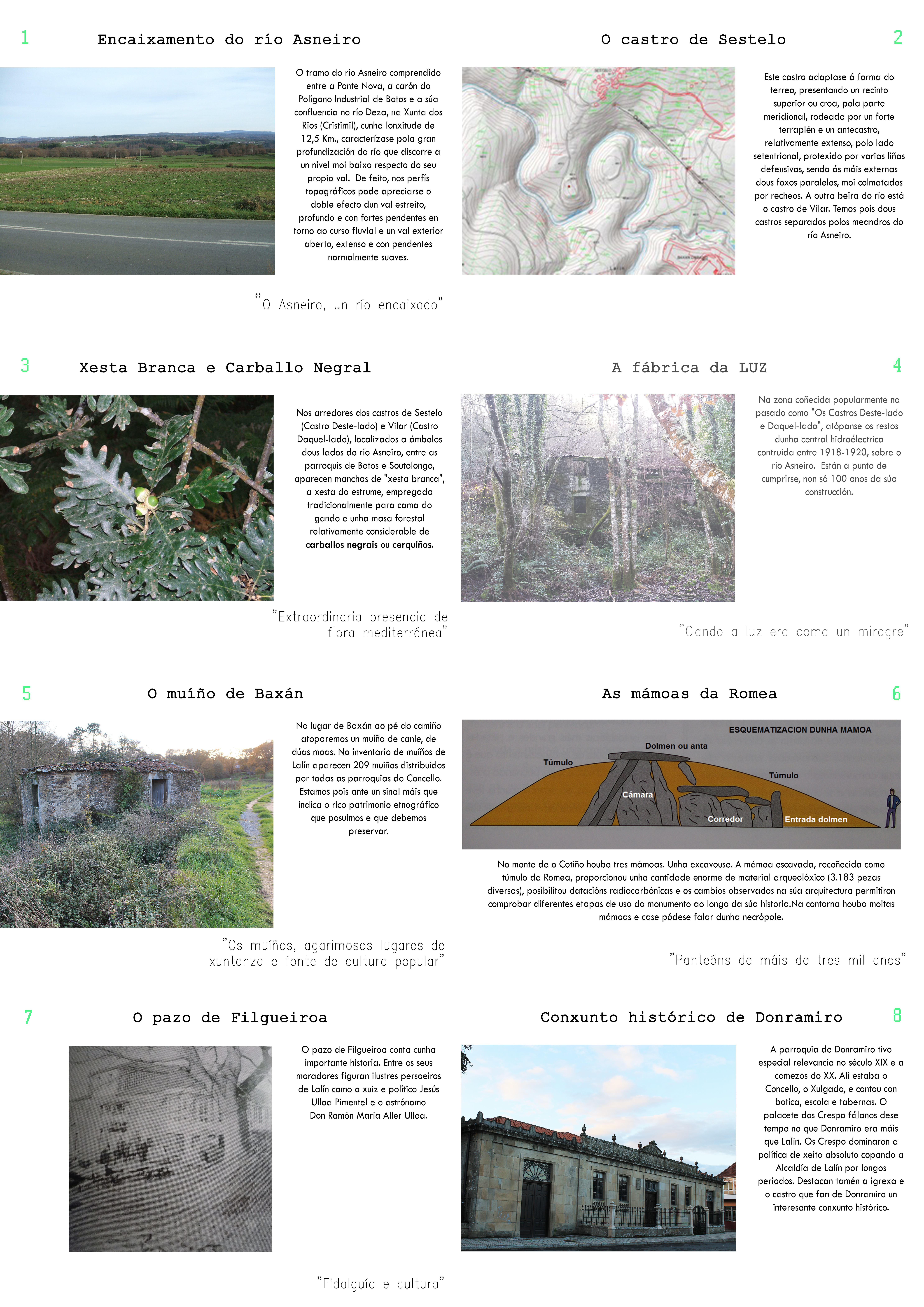 Lugares: Lalín quilómetro cero, paseo Pontiñas, Estivelle, Carballude, Valiñas, O Requeixo, Río Asneiro, Castro de Sestelo, Polígono de Botos, muiño de Baxán, Os Olmos, Filgueiroa, Carballeira da Crespa, Donramiro, Lalín.